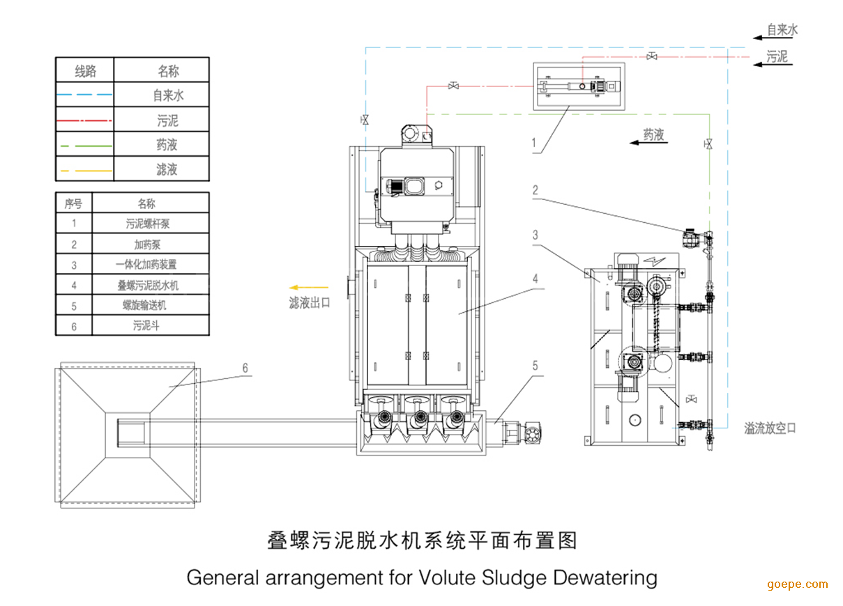 叠螺式污泥脱水机结构原理 叠螺式污泥脱水机集全自动控制柜、絮凝调质槽、污泥浓缩脱水本体及集液槽于一体。主体是由固定环和游动环相互层叠,螺旋轴贯穿其中形成的过滤装置。前段为浓缩部,后段为脱水部,将污泥的浓缩和压榨脱水工作在一筒内完成,以独特微妙的滤体模式取代了传统的滤布和离心的过滤方式。